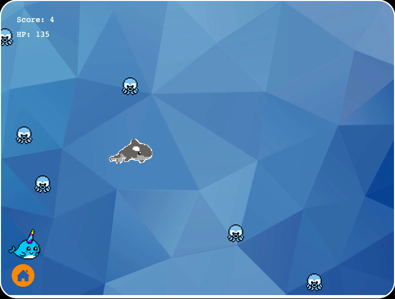Created timed features, animations, and drag-and-drop items with collisions. Narwhals can collect coins from squid collisions in the mini-game